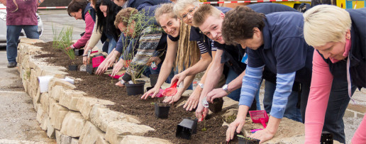 Belegschaft begrünt Unternehmensfläche nach ihren Wünschen